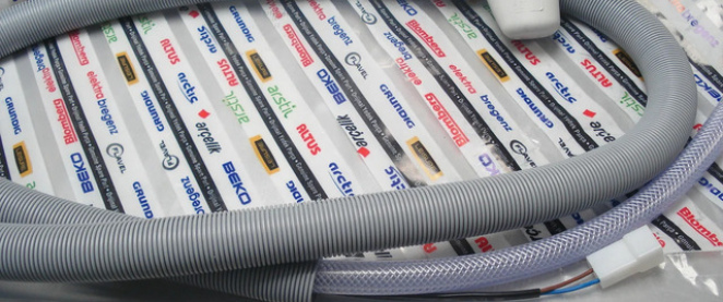 Посудомоечная машина, как правило, имеет два типа шлангов: заливной и сливной. Они изготавливаются из разных материалов, существуют варианты из практичного полипропилена либо модели из резины в износостойкой оплетке из металла.